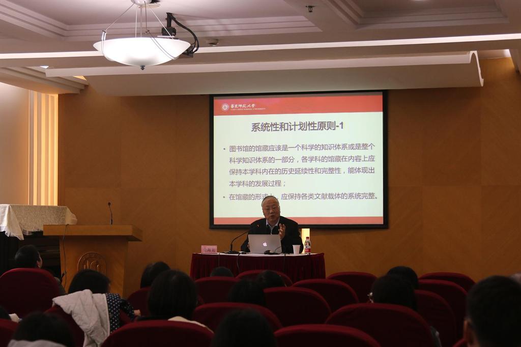 此次会议邀请了理论知识和实践经验丰富的原华东师范大学图书馆常务副馆长余海宪及复旦大学图书馆副馆长张计龙给大会作专题报告。提高馆员对图书馆相关知识与实践的认知,进一步提升馆员的专业技能,为今后图书馆提供学科馆员、科研数据管理等服务储备和培育人才。 开幕式上,常务副馆长陆铭代表我校图书馆致欢迎辞,感谢上海市高校图工委及兄弟馆对我校图书馆工作的大力支持,感谢余老师与张老师前来授课,与大家分享专业知识及工作经验,并预祝本次研讨会取得圆满成功。