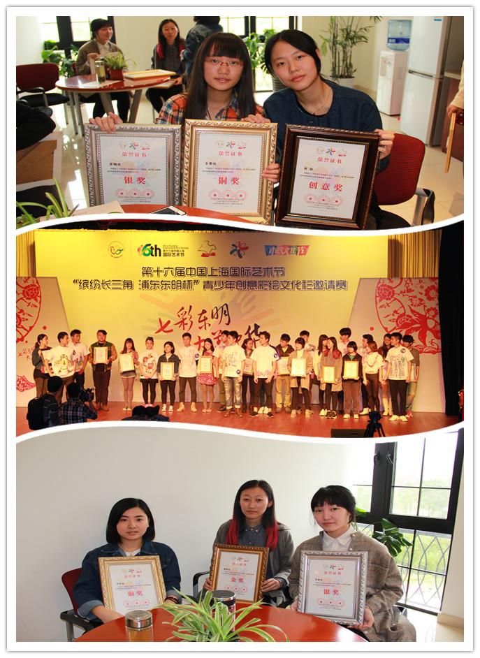 11月1日上午,第十六届中国上海国际艺术节“浦东东明杯”长三角地区青少年创意彩绘文化衫颁奖仪式,在浦东新区东明文化中心隆重举行。我校参赛选手美术学院林漪同学摘得本次比赛最大奖——最佳创意奖,数码学院杨烨睿同学荣获金奖,美术学院张晓萍、数码学院李雨轩同学荣获银奖,美术学院朱紫怡、数码学院李缤倩同学荣获铜奖。