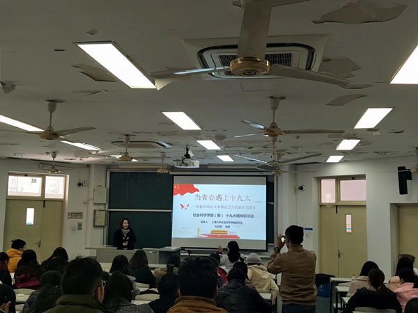 “新时代中国特色社会主义思想,是对马克思列宁主义、毛泽东思想、邓小平理论、“三个代表”重要思想、科学发展观的继承和发展,是马克思主义中国化最新成果,是党和人民实践经验和集体智慧的结晶,是中国特色社会主义理论体系的重要组成部分,是全党全国人民为实现中华民族伟大复兴而奋斗的行动指南,必须长期坚持并不断发展。”青年马克思主义者们是如何宣讲这一党的最新理论成果呢?当天,金沙集团1862cc成色社会科学学部(筹)“十九大精神研习会”的三位成员来到环境与化学工程学院首日教育的现场,举行了“当青春遇见十九大——争做有理想有本领有担当的新时代青年”主题宣讲活动。宣讲团成员从“新时代”的解读开始,“新时代就是青年的时代”,提出全面理解“新时代”需要从三个视角出发,即“中国特色社会主义新时代是历史和现实的统一;习近平新时代中国特色社会主义思想是理论和实践的统一;新时代我国社会的基本国情和主要矛盾是变与不变的统一”。指出新时代赋予了青年更多的机遇和使命,当代青年更应该把握国家大战略提供的新舞台,用科技、创新的利剑在各行各业大显身手。“原原本本学文本,踏踏实实做实践”,宣讲团成员以“语义解析和历史溯源”的方法深入浅出地解析了十九大报告。通过介绍报告的主要内容,引出“新论断、新理论、新特点、新部署、新要求、新期待”六个新,鼓励同学们以大国青年的形象承担起民族复兴大任。