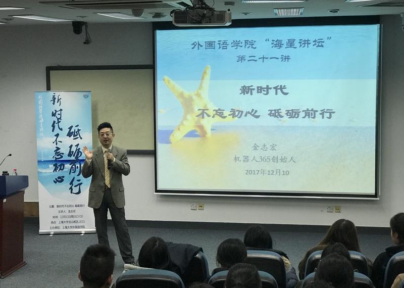 12月10日,外国语学院在J102举行题为“新时代不忘初心 砥砺前行”的校友讲坛,本次讲坛也是海星讲坛的第二十一讲。本次讲坛邀请到我院杰出校友金志宏先生为大家带来精彩讲座。外国语学院党委副书记曾桂娥老师、辅导员汪旭娟、梁苗、邹琴、马思涵等老师出席,学院200余名学生参加了本次讲坛,2016级英语专业本科生梁嘉艺同学担任主持。 首先,党委副书记曾桂娥老师致辞,并隆重介绍嘉宾。金先生1983年毕业于上海外国语学院分院(现金沙集团1862cc成色外国语学院前身),是机器人365创始人,是国内大宗商品交易市场的奠基人和领军人物、互联网金融的首倡者。为了培养一批复合型、应用型,具有国际视野的优秀外语人才,外国语学院于2016年3月隆重推出“海星计划”,旨在为我院学子提供个性化的服务和个性化的培养方案,希望我们的学生早日成为祖国之星。海星是一种海洋生物,契合我院“开放、包容、进取”的海洋文化。海星有五个触手,象征我院学生需要具备的五大基本功“听、说、读、写、译”,通过五大基本功的训练,着力培养学生 “创新、表达、沟通、抗压、快乐”的五大能力。 讲座伊始,金先生表达了重回母校的激动心情,希望能够为同学们解答迷惑,指明道路。初心就是每个人心中那一个梦想,每一个人心中都当有梦想,并不忘初心,砥砺前行。那么要如何实现自己的梦想呢,目前我们需要做的就是把握好在学校的四年,充分学习知识,打好基本功,珍惜大学四年。金先生坦言在农业局工作时也曾有觉得自己在大学的不够多的遗憾,所以这方面很有感触,强调了一定要珍惜在学校的分分秒秒。 而后,金先生便从自己的亲身经历出发回顾了自己的报效祖国的初心。来到上海大外国语学院分院后,这里注重实战的教学理念帮他夯实了基础。大学毕业后他被分配到上海市粮食局,成为了首席翻译,参与了上海菜篮子工程等数十大工程。在这里,他坚守了13年,在这期间,他也成为了英国剑桥大学访问学者,获金融学博士学位以及美国普度大学访问学者。到1996年,他进入了美国农业部成为了农业官员,期间获得加州大学农商学博士学位。金先生与我们分享了他在美国写全球农业研究报道的的经历,由他统计出的数据成为了当时全世界的风向标。在2000年回国之后,他积极投身创业:2000年6月创立金氏投资顾问咨询(中国)有限公司,担任董事长;2003年2月合伙创办中美合资“中国汇易咨询”。在创业过程中,他都是通过他专业的技能为投资者解读市场环境、投资领域等等,为中外投资者创造了无数的财富与机遇。通过自己的经历,金先生说,作为英语系的同学们,我们应成为国际化的人才,成为复合型的人才,一定要做到一专多能,体现出英语系的专业性,专业的价值,词汇量等等。当我们夯实了基本知识之后,人工智能在不同语气不同环境的翻译领域中要想超越我们,还需要很长的时间了。 金先生最后也提出几点具体的要求。首先,将个人理想融入到国家建设中,投身于社会主义建设中。当成为国际化人才之后,也要始终记得自己是中华民族的子孙后代,要适应国际化,更要建设祖国。其次,就是希望大家能把点滴的知识汇聚成智慧的海洋。每天进步一点点,实现从知识到智慧的升华。希望大家都能够提出成为智者。 最后,在提问环节中,同学们也非常的踊跃和积极,问到了在金先生成功的履历中是否也遇到过坎坷以及如何涉足人工智能领域等问题。金先生也都详细的一一为同学们做出了解答。他提出在坎坷中要有一颗平常心以及希望大家保持对于新事物的接受,能根据自己的喜好,以正确的学习态度,方法和时间管理的能力来广泛学习。 (纪婷 供稿) 学生感言: 赵宇祺:金志宏先生在首日教育上讲述的经历给我感触很深。金先生面对美国人承诺给他的“绿卡”待遇却没有动摇,坚持说“我是中国人”并最终回国发展,他对美国社会有着很深的认识,告诉了我们黄种人尤其是中国人在美国的现状,呼吁我们作为外国语学院的学生,我们不仅应该尽己所能多学些本领,更应该在出国增长见识后回到祖国,为祖国做贡献。这样的精神很打动我。作为英语系的学生,如今很多人都将美国绿卡视为梦寐以求的目标,一些英语系同学也在出国后几乎不再回国,这样对中国不自信的做法是不可取的。而金先生在那个年代都怀着对祖国的热忱和责任感,这对我来说是一种警示和激励。 张雪亭:这次首日教育我们有幸听讲了金沙集团1862cc成色校友金志宏金教授的讲座,这让我十分感慨于金沙集团1862cc成色外国语学院的创造人才的能力。金教授是机器人365创始人,也创办了金氏投资等有限公司。金教授结合了自己的人生经历为我们讲述了外语人才在当今社会的挑战与优势。从讲座中,我明白了我们首先要坚持自己爱好,既然选择了英语系,就不要管就业的问题,努力去学习。在我们充分掌握了专业知识后,我们的选择余地会更大。同时我们也应该做一些学生工作和志愿者活动来充实自己。最后,即使我们面对许多挫折,我们也应该毫不退缩,继续前进。 史子涵:今天又是一个新学期的开始。首先,我们外国语学院的师生一起聆听了金志宏老师的讲座。金志宏老师给我们讲述了他的一生经历,从小学的学霸,到大学毕业进入粮食局,再到出国学习金融等专业,最后又亲手创立公司,三年内成功打造成为全