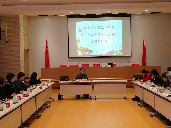 研修班还邀请上海市委党校哲学教研部王强教授作了《学习十九大精神,加强基层党的建设》的专题报告。他围绕十九大的历史时代背景,新时代全面从严治党永远在路上,执政党的转型与党的执政能力的提升以及坚持党的领导与中国特色社会主义道路不动摇等方面作了精彩的报告。市委党校第四分校副校长、上海行政学院第四分院副院长项建春教授就《如何加强十九大精神的学习》和研修班学员作了专题研讨。他指出,各级党组织要以习近平思想和十九大精神为指导,加强党员干部教育,特别是加强理想信念教育、政治意识教育、党的纪律教育和廉洁自律教育。在教育的形式上要积极思考,坚持党性教育、现场教学、实践教学和情景教学相结合,力争教育取得实效。他特别强调,党务干部特别要加强自身建设,注重学习,牢记宗旨意识,端正工作动机,敢于担当,实事实做,清正廉洁,淡薄名利,努力成为知识扎实、工作出色、富有特色、保持本色的优秀党务干部,主动作为,凝心聚力,有力地推动各项事业的发展。 本期研修班紧密围绕党的十九大精神,采取专题报告、现场教学与专题研讨相结合,帮助二级党组织书记全面学系统学深入学,做到真学真懂真信真用,用习近平新时代中国特色社会主义思想武装头脑、指导实践、推动工作,把力量凝聚到建设高水平大学的各项任务上来。 |
