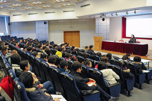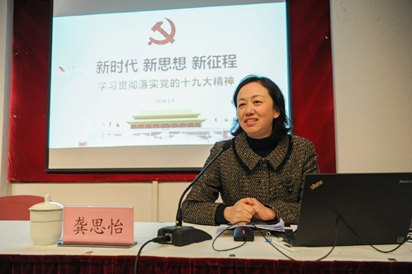 1月4日下午,校党委副书记、副校长龚思怡在行政楼报告厅为国际交流学院等九个学院、部处党员作题为《新时代新思想新征程——学习贯彻落实党的十九大精神》专题报告。