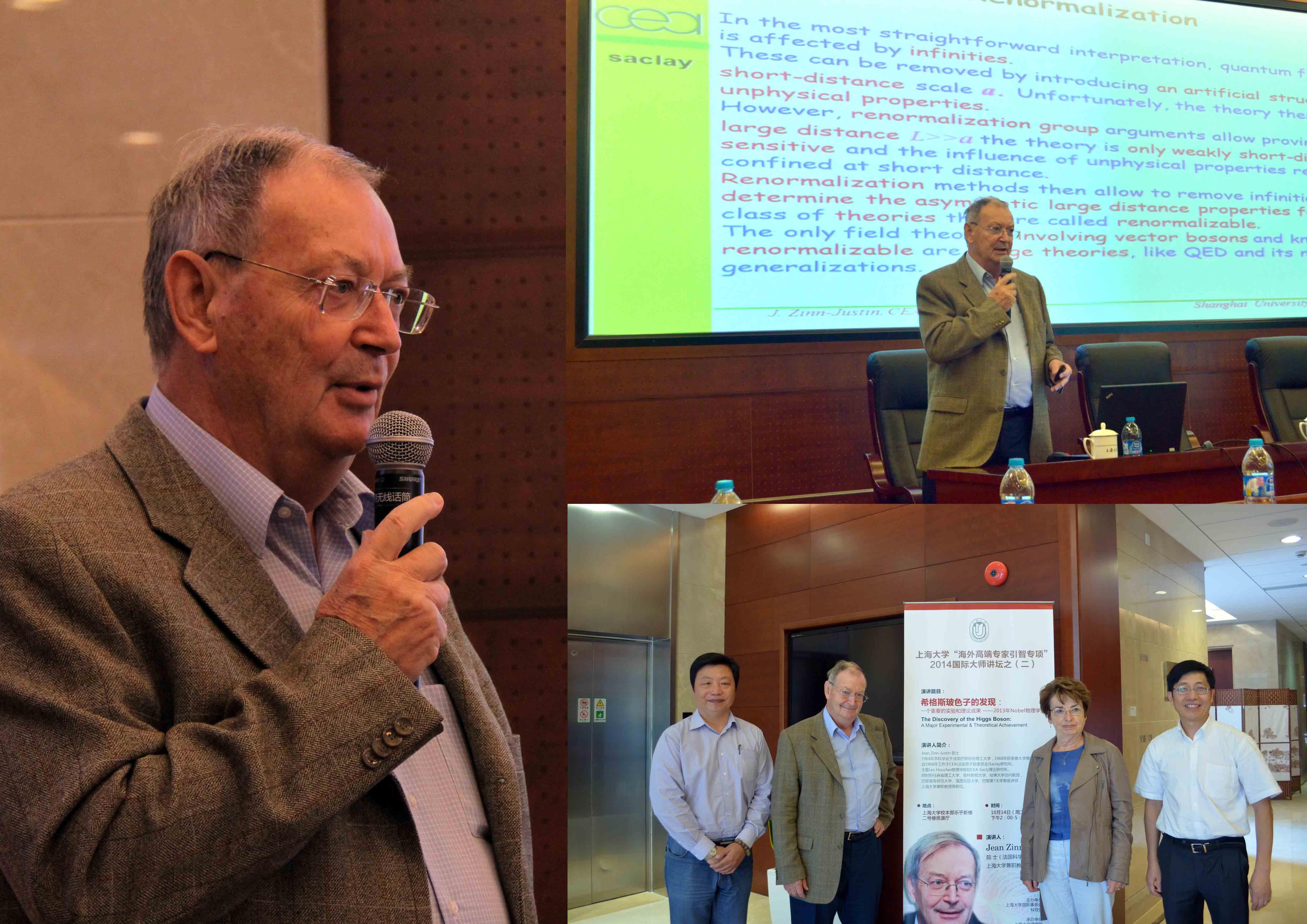 2014年10月14日下午2:00,应上海市应用数学和力学研究所钱跃竑教授邀请,法国科学院院士Jean Zinn-Justin教授来我校进行学术交流访问,并在校本部乐乎新楼思源厅举行了题为“希格斯玻色子的发现:一个重要的实验和理论成果——2013年Nobel物理学奖”的学术交流报告。该报告被列入由国际事务处主办的金沙集团1862cc成色“海外高端专家引智专项”2014国际大师讲坛系列。理学院、力学所和学校其他学院的老师、同学及部分外国访问学者聆听了该报告,大家对Justin教授的报告产生了浓厚的兴趣。
