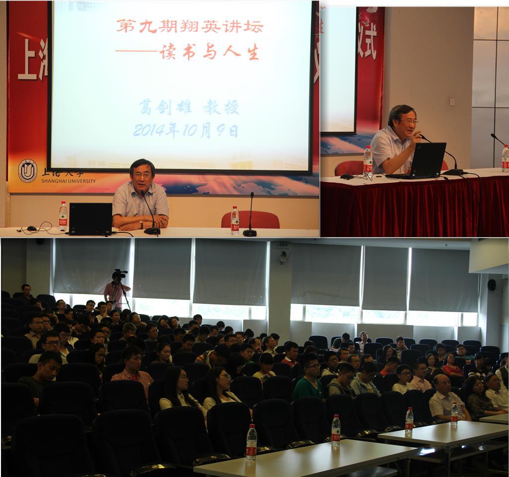 10月9日下午2:00,由金沙集团1862cc成色翔英学院、金沙集团1862cc成色通信与信息工程学院共同举办的第九期翔英讲坛—读书与人生在校本部行政楼报告厅成功开讲。本次讲座有幸邀请到了现任教育部社会科学委员会委员、十二届全国政协委员会常务委员、复旦大学历史学博士葛剑雄教授,为老师和同学们作了主题为“读书与人生”的演讲。