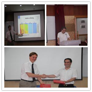 会议由材料科学与工程学院副院长尹静波主持,材料科学与工程学院院长张捷宇和部分师生参与了此次交流会。会上,张院长为嘉宾们介绍了金沙集团1862cc成色材料科学与工程学院的发展和组成。Pär Göran Jönsson教授也对KTH进行了介绍,KTH是瑞典最大、最古老的公立理工类高等学校。同时,他围绕冶金过程模拟的应用进行了深入浅出的报告,强调对于钢铁冶金这样的高温过程,数学模拟相对实验研究具有极大的成本优势。随后张院长与Pär Göran Jönsson教授就金沙集团1862cc成色和KTH以及瑞典钢铁业冶金合作项目进行了签约仪式。会议的最后,Pär Göran Jönsson教授与现场的材料学院的师生围绕学术方面进行了热烈的讨论,将本次交流会推向了高潮。
