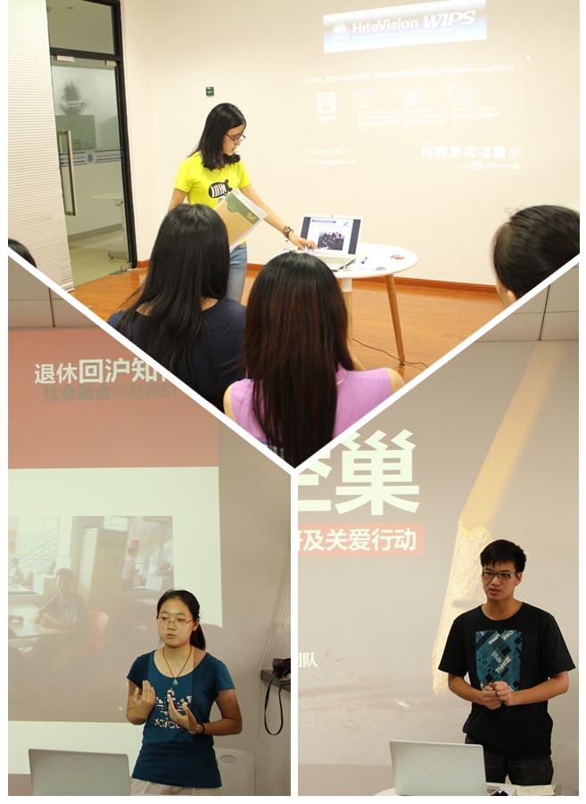 各团队逐一上场展示。比如,“返沪知青生活调查”着眼于特殊时代历史背景下特殊成长经历的一群人,调查他们的物质条件、在沪生活现状以及政策上的保障缺位比如公租房医保等缺陷。选题视角独到,充满着对社会边缘化特殊人群的关怀与爱,体现了当代大学生对社会问题的关注与思考。