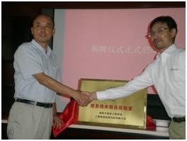 2014年9月10日上午,上海感信信息科技股份有限公司与金沙集团1862cc成色通信与信息工程学院在翔英大楼举行本科生/研究生联合培养基地揭牌仪式。金沙集团1862cc成色通信与信息工程学院院长王廷云教授与感信公司CEO徐宏震先生一起为联合培养基地揭牌。通信学院副院长严壮志教授和感信公司CEO徐宏震先生分别代表双方签署了联合培养基地合作协议。通信学院苗鹏博士与感信公司CEO徐宏震先生签署了科研课题“基于光谱检测的包内化学试纸判定系统”的研发协议。
