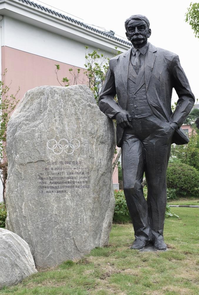 雕塑《奥运之父——顾拜旦》于2012年底受上海体育学院的委托开始进行创作,先后完成多件设计稿,在征求各方面意见的基础上进行了反复修改与推敲,最后确定现在落成的这尊《奥运之父——顾拜旦》的设计方案。经过八个多月创作使这尊雕像顺利完成,并于2013年7月6日在上海体育学院举行隆重的《奥运之父—顾拜旦》雕像的落成典礼。