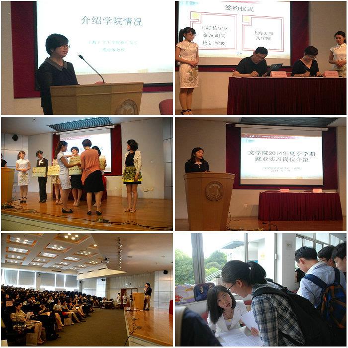 在随后举行的夏季学期就业实习岗位发布会上,共推出16家企事业单位提供的100多个岗位需求,涉及包括展会公关、广告、教育培训、房地产投资、咨询、艺术、现代服务业、机关事业单位、快消品行业等多种行业类型。文学院党委副书记王丽娜向与会同学们详细介绍了16家企事业单位的基本情况和岗位需求信息,并鼓励同学们努力把握实习机会,在接下来的实习中,以“认真负责”的态度,“热情主动”的状态投入工作,展现上大文学院学子的优秀作风和扎实能力。部分企事业单位代表也在会上介绍了各自的企业文化与实习人员需求,并与我院学生进行互动。发布会后,学生们根据个人兴趣与实际需求争先向心仪的实习单位投发简历,期望获得一个增加社会阅历、提升自身能力的实习锻炼机遇。