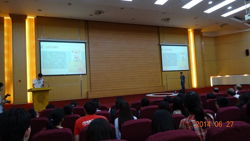 2014年6月27日(周五)下午13:30在图书馆报告厅举行学生党建“七一”表彰会,金沙集团1862cc成色机自学院自强队临时党支部,作为全校24个优秀学生党支部的代表,在表彰会上自强队临时党支部书记陈永东同学对支部如何建在大学生科技创新团队最活跃的细胞上,进行了其风采展示。