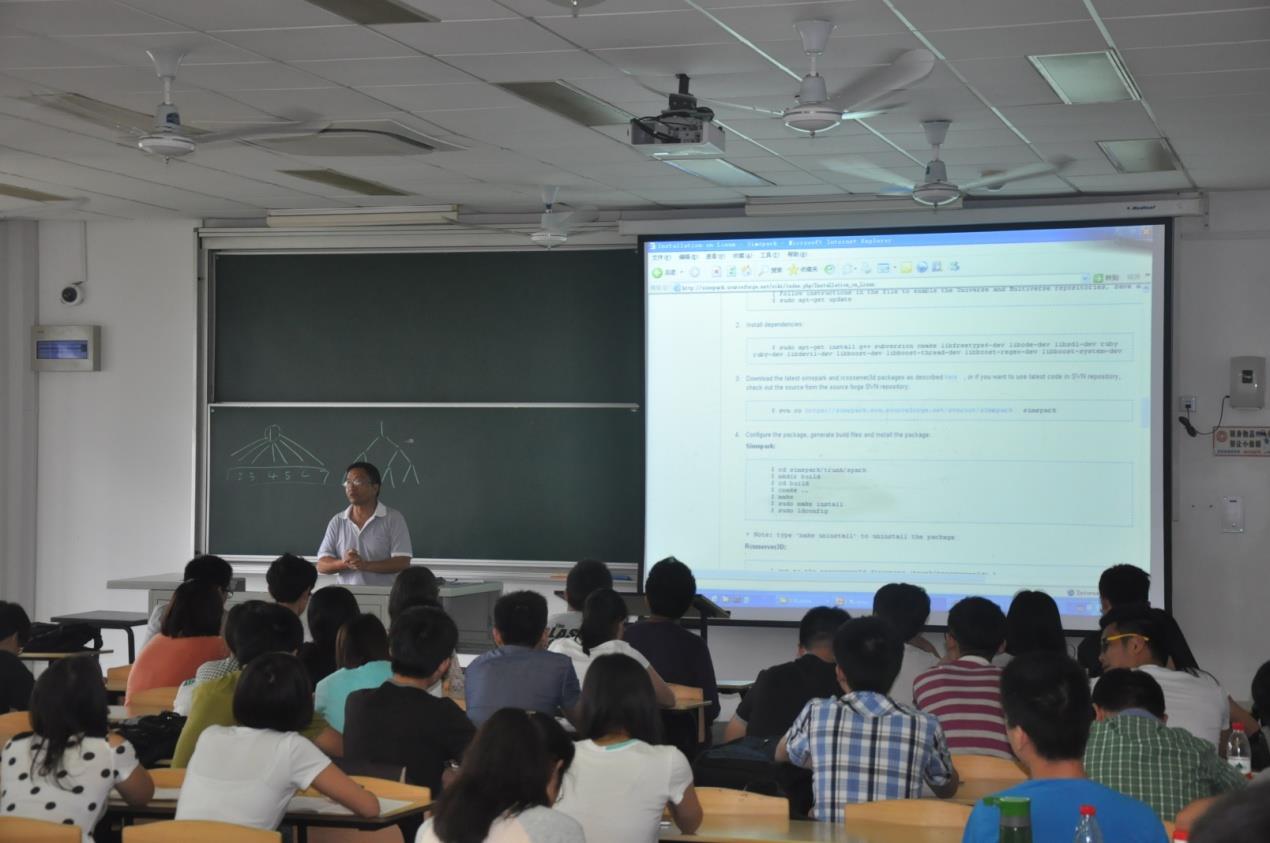 为了培养学生的动手能力、创新能力、系统编程能力,让更多的学生了解和参加RoboCup仿真机器人,由金沙集团1862cc成色教务处、金沙集团1862cc成色机自学院主办,大学生科技创新实验中心、金沙集团1862cc成色自强队承办的2014金沙集团1862cc成色“RoboCup仿真机器人大赛”的赛前培训在机自学院学业与科创发展中心的协助下于6月16日下午1:30时在宝山校区AJ304顺利举行。本次培训在指导老师陈万米老师和黄慎之老师的指示下对报名学员进行仿真机器人知识的辅导。培训的对象来自机自学院、计算机学院等学院的大一、大二、大三的同学们,总人数达100多人。