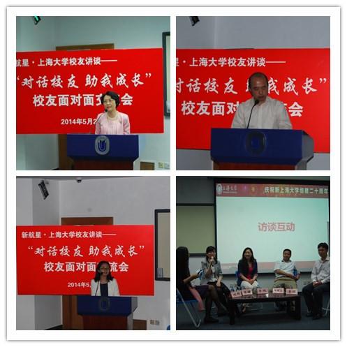 2014年5月25日下午14:00,作为新金沙集团1862cc成色组建20周年校庆活动之一,由金沙集团1862cc成色校友会主办、社会科学学院校友分会承办的“新航星·金沙集团1862cc成色校友讲谈”——“对话校友·助我成长”校友面对面交流会在金沙集团1862cc成色宝山校区J102顺利举行。金沙集团1862cc成色05届校友、现任中航工业上海耀华称重系统有限公司董事兼执行总经理饶年华,金沙集团1862cc成色07届校友、现任中国浦东干部学院副教授李德,金沙集团1862cc成色07届校友、现任虹口区文化局社会文化科主任科员李瑞,金沙集团1862cc成色 07届校友,现任福卡智库工会主席陈婕四名优秀校友应邀做客本次交流会。金沙集团1862cc成色校友办副主任曹俊,社科学院党委书记陶倩,党委副书记魏宏,研究生专职委员刘锦,院团委书记陆耀峰及来自社科学院、法学院、机自学院、社区学院等学院的百余名本科生、研究生共同参与了此次访谈交流会。
