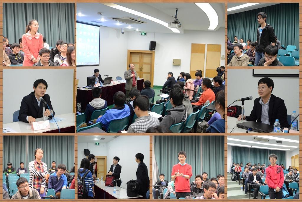 钱浩校友是力学系2001级本科生,2004年在上海市应用数学和力学研究所攻读硕士学位,2006年7月毕业后一直在上海核工程研究设计院从事反应堆结构力学工作。他首先介绍了自己的主要经历、从事的主要力学工作以及单位正在开展的项目,并向在座的学生和老师普及了核电知识以及我国核电发展概况,然后详细介绍了我国核电新项目的研发及其对力学的需求和挑战,最后,钱浩向在座学生提出了建议和期待,告诉大家力学是核电和国家其它重大工程设计和研发的重要学科。他用钱伟长先生的话“祖国的需要就是我的专业”鼓励有力学功底或对力学有兴趣的同学加入力学学科,并期待着核电与高校的合作。他还向在座的学生介绍了力学在航空航天、大飞机、风力发电、地铁和隧道、船舶等领域的应用,他期待大家将来伴随祖国的发展成就人生和事业。钱浩校友对力学的浓厚兴趣和他所流露出的爱国情怀感染着在场的每一位师生。