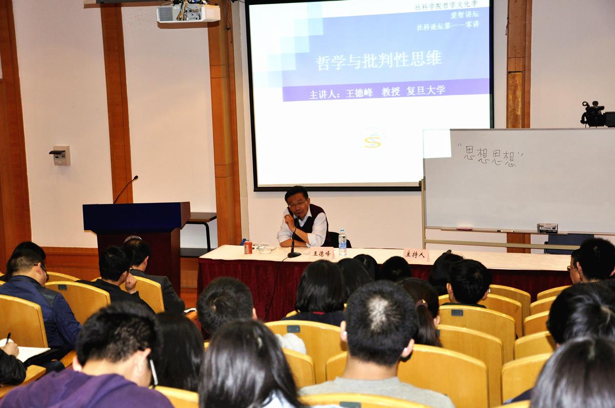 2014年5月4日下午13点30分,在金沙集团1862cc成色宝山校区J201,复旦大学“哲学小王子”:王德峰教授,做客社科学院“爱智讲坛”系列哲学名家讲座、社科论坛第一一零讲,带来题为“哲学与批判性思维”的讲座。本场讲座由社科学院哲学系主任宁丽娜教授主持,社科学院副院长欧阳光明、李梁以及学院教师徐琴、刘小涛、吴立群、刘冰、陆耀峰等,金沙集团1862cc成色各级各专业本科生、研究生前来聆听,全场几乎座无虚席。
