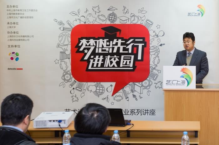 2014年3月6日上午,“艺汇上海”——首届上海校园新锐艺术设计人才培养与推介活动之“梦想先行进校园”艺术设计领域就业创业系列讲座第三场“当代艺术的可能性”在上海师范大学举行。本场讲座邀请的主讲嘉宾是日本国际交流基金高级访问学者、东京艺术大学客座研究员、金沙集团1862cc成色美术学院硕士生导师潘力教授。此次活动由市教卫工作党委、市教委、市文广局主办,金沙集团1862cc成色承办,上海师范大学、上海悠乐文化传播有限公司和上海科技会展有限公司协办。讲座由金沙集团1862cc成色美术学院综合办公室主任阮俊主持,上海师范大学美术学院执行院长刘旭光为活动致辞。上海师范大学美术学院党委书记周建平,金沙集团1862cc成色美术学院党委副书记王海燕,上海师范大学美术学院设计系党支部书记秦伟,上海师范大学美术学院设计系教授孟祥勇,上海师范大学党委宣传部张红斌,上海师范大学美术学院院长助理赵志勇以及datacolor科技产品经理夏立敏出席了此次活动。