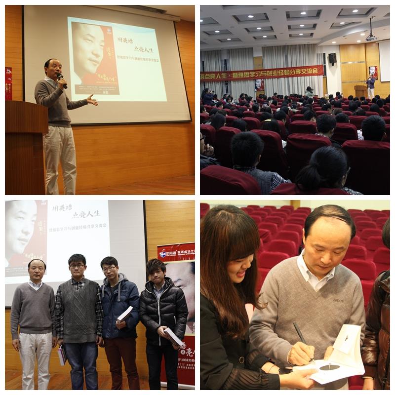 2013年12月5日晚6点半,有着“中国雅思之父”之称的新航道国际教育集团总裁胡敏教授应金沙集团1862cc成色悉尼工商学院邀请,于嘉定校区图书馆报告厅作题为“用英语点亮人生•暨雅思学习与创业经验分享会”的专题讲座。学院团委书记张明明、学生会秘书长张洁茹及上海新航道学校执行校长张凡林先生、市场总监邓碧云先生和市场运营经理沈重阳先生出席了本次讲座。