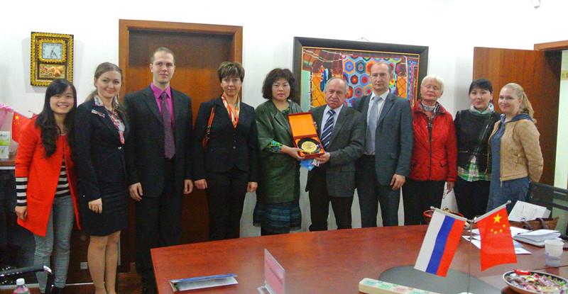 2013年11月14日,俄罗斯阿尔泰边疆区教育与青年政治委员会副主席菲里波夫•亚历山大率团访问金沙集团1862cc成色,随行的有阿尔泰国立技术理工大学国际教育与合作处处长斯科瓦罗得尼科夫•弗拉基米尔、上海市友协李舒等。金沙集团1862cc成色上海合作组织公共外交研究院副院长张丹华接待了代表团,莫斯科国立大学沃罗尼娜教授参加了座谈。