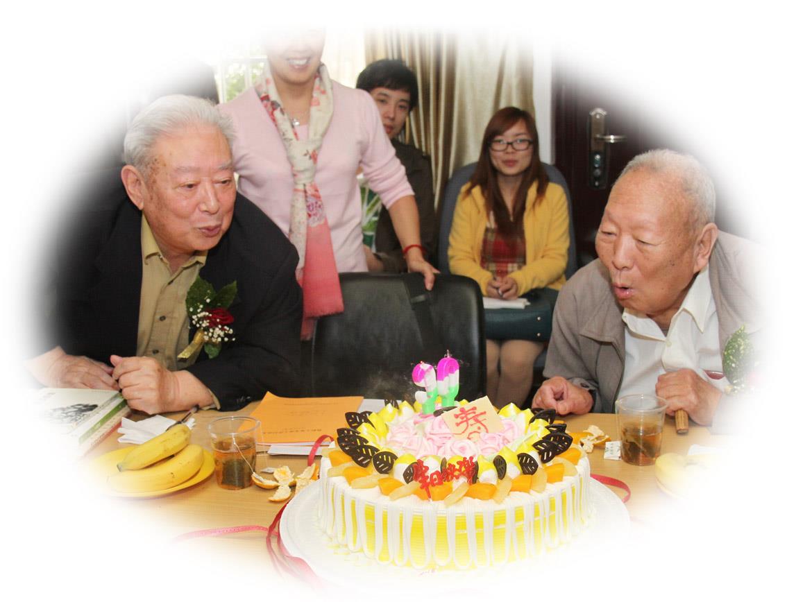 文学院党委书记竺剑深情地表示,文学院的发展历史凝聚了老干部和广大教职员工的心血,学院的发展有他们不可磨灭的功绩,应该让后来人特别是青年教师了解这段历史,铭记学院的发展历程。他代表文学院向二位寿星表示祝贺,并送上了精心准备的寿礼——用镜框镶嵌的两位老寿星上任之初上海市委、市政府的任命文件精致作品作为留念。中文系丁迪蒙副教授献上“康而寿”、“仁者寿”两幅书法为两位老同志祝寿。