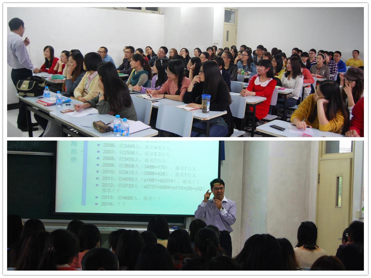 10月18日下午13:45,社会科学学院邀请中国浦东干部学院副教授王君在校本部B401进行一场“直击2014中央和上海公务员考试——命题官眼中的世界”的专题讲座。王君曾在公务员考试命题机构任职多年,多次主持、参与上海市公务员考试、领导干部公开选拔和竞争上岗测评等工作,积累了丰富的经验。讲座中王君以一个命题官的视角分析了公务员考试的若干问题,以切身感受介绍了公务员岗位目前的工作状况,吸引了来自社科学院、法学院、社会学院、文学院、外语学院70余名学生的积极参与。本次讲座由学院就业专职教师刘锦主持。