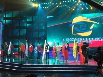 本届中国大学生电视节还特设青奥主题竞赛单元,以“聚焦南京,拥抱青春”为创作主题,选择青奥会承办地南京为拍摄地点进行短片创作。在今年夏天,由我院青年教师陈晓达老师带队,11级MFA邱慧同学、张叶同学,10级MFA吴嘉栋同学代表金沙集团1862cc成色参与了此次竞赛单元训练营活动,在比拼中展示我院学子的创作风采。在20日下午江苏卫视颁奖仪式录制现场,邱慧同学手举我院院旗和其余八所高校参赛团队一起接受了电视节组委会的特殊表彰。