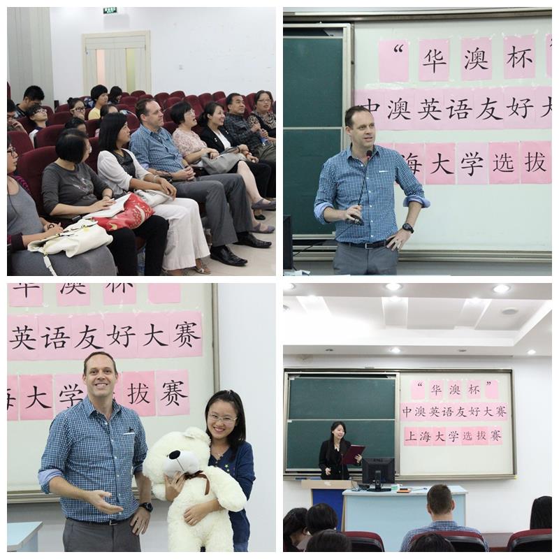 2013年9月27日,“华澳杯”中澳友好英语大赛金沙集团1862cc成色选拔赛在嘉定校区悉尼工商学院文德楼报告厅顺利举行。经过前期初赛、复赛的重重选拔,12名来自悉尼工商学院,钱伟长学院,外国语学院,影视学院,法学院以及计算机学院的同学进入最终的决赛,悉尼工商学院党委书记李双老师应邀出席比赛。